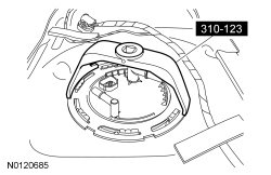 NOTE: Make sure the alignment tab on the FP (Fuel Pump) module and the fuel tank meet before tightening the FP (Fuel Pump) module lock ring.