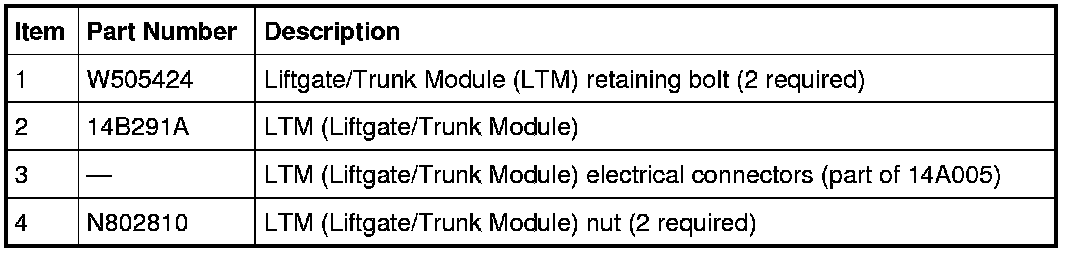 3. Remove the 2 LTM (Liftgate/Trunk Module) retaining bolts and remove the LTM (Liftgate/Trunk Module).