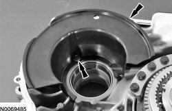 43. Inspect the transfer shaft fluid dam to be sure it is seated evenly into the torque converter housing.