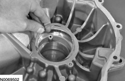 45. Using the Bearing Cup Installer 307-576, press the transfer shaft bearing cup in the torque converter housing.