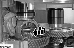 29. Rotate the transfer shaft and the differential several times to seat the bearings.