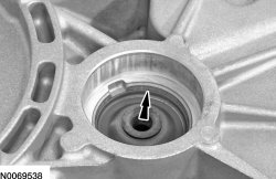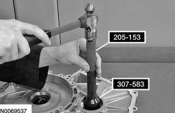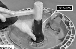Using the Converter Seal Installer 307-575 and a dead blow hammer, install the torque converter hub seal in the torque converter housing.