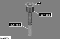41. Assemble the Handle 205-153 and the Oil Dam Seal Installer 307-583 and install a new transfer shaft fluid dam on the Oil Dam Seal Installer 307-583.