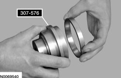47. Install a new differential bearing race on the Bearing Cup Installer 307-576.