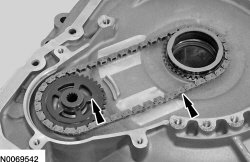 49. Install the pump drive sprocket and driven sprocket thrust washers.