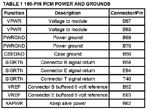 VPWR is the primary source of PCM power. VPWR is switched through the PCM power relay and is controlled by the PCM.
