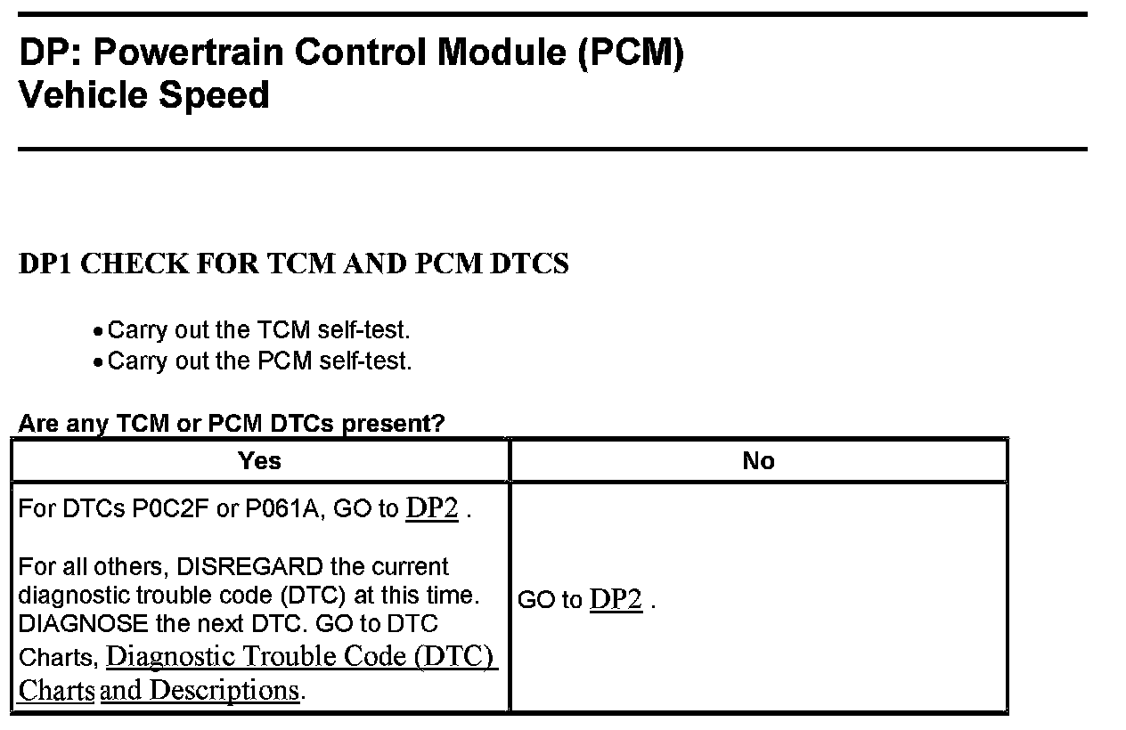 PINPOINT TEST DP: POWERTRAIN CONTROL MODULE (PCM) VEHICLE SPEED