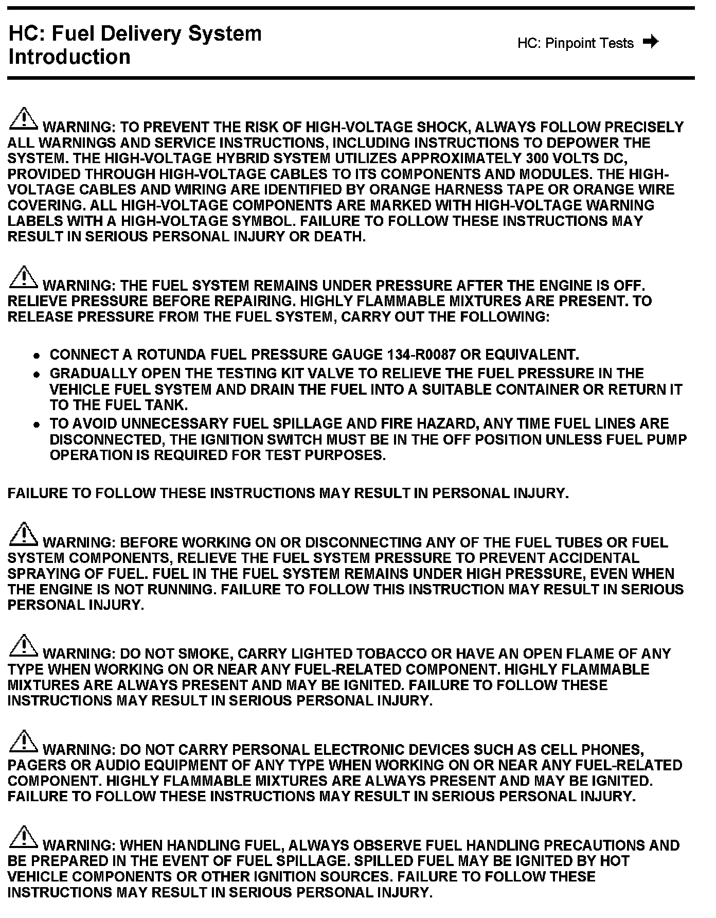 PINPOINT TEST HC: FUEL DELIVERY SYSTEM