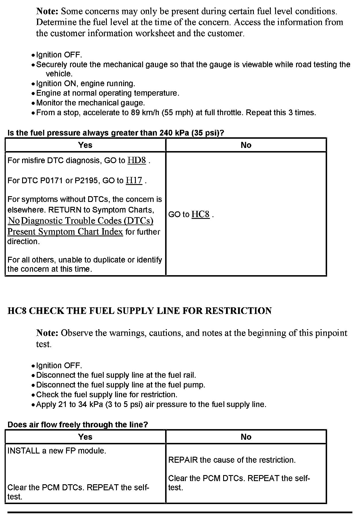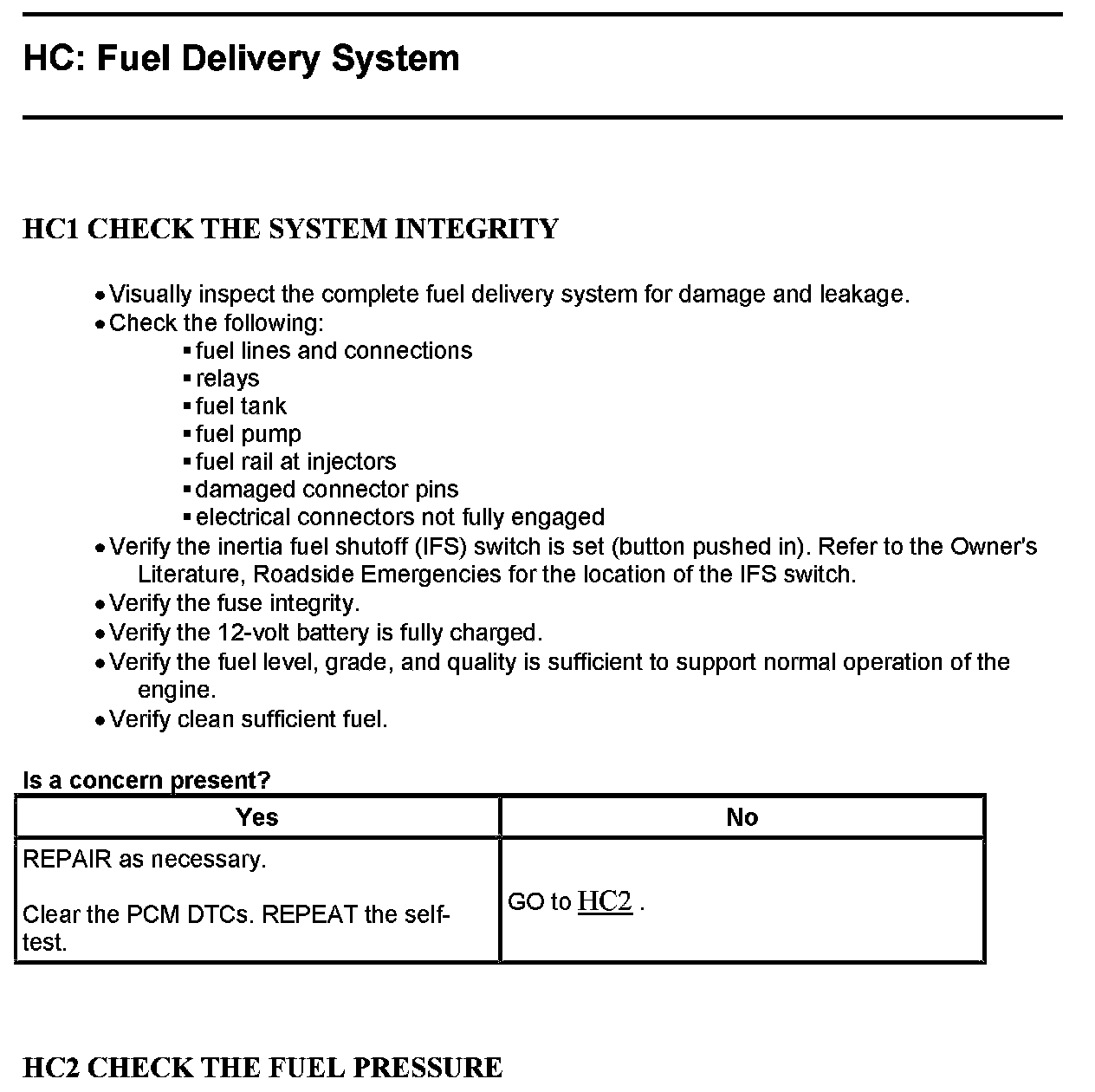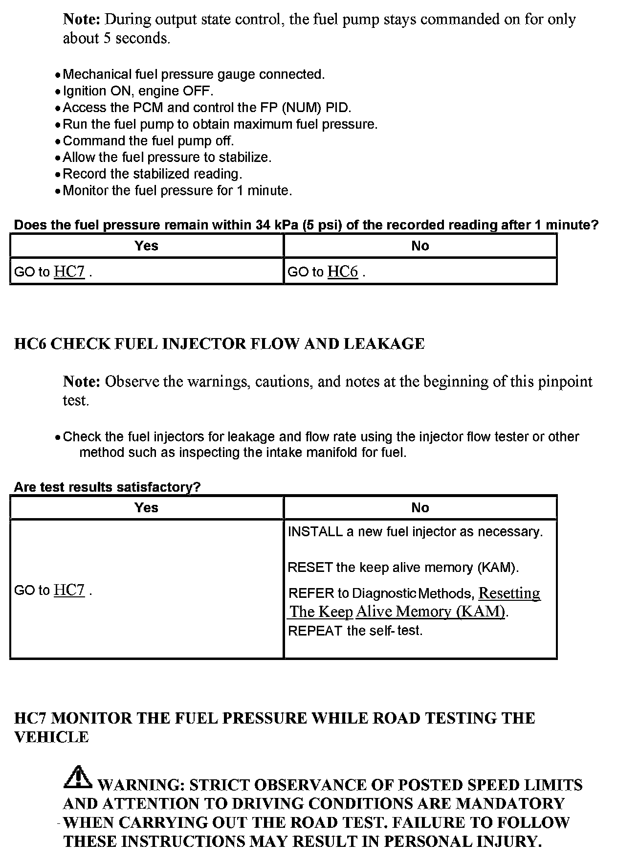 Test HC: Fuel Delivery System