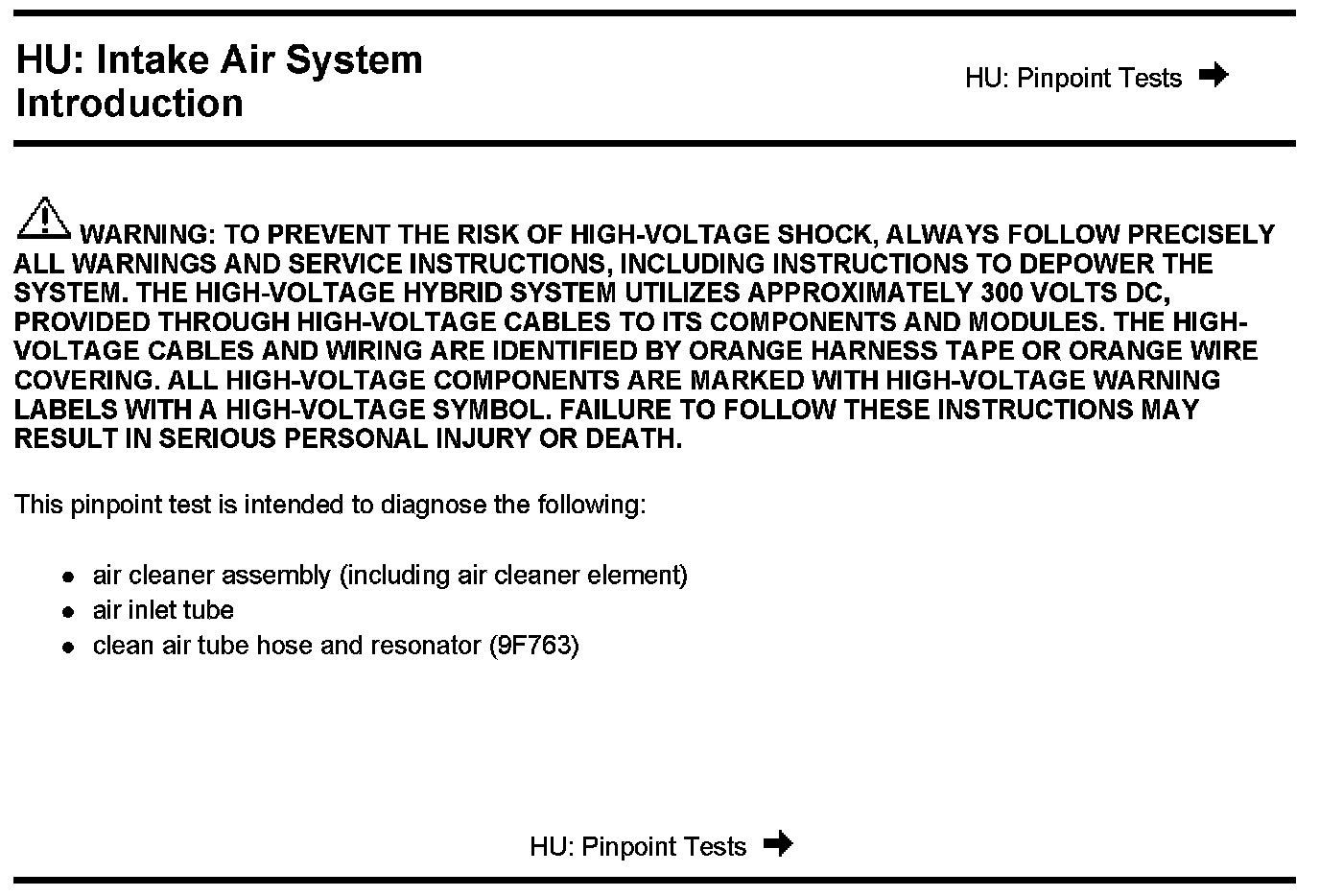 PINPOINT TEST HU: INTAKE AIR SYSTEM