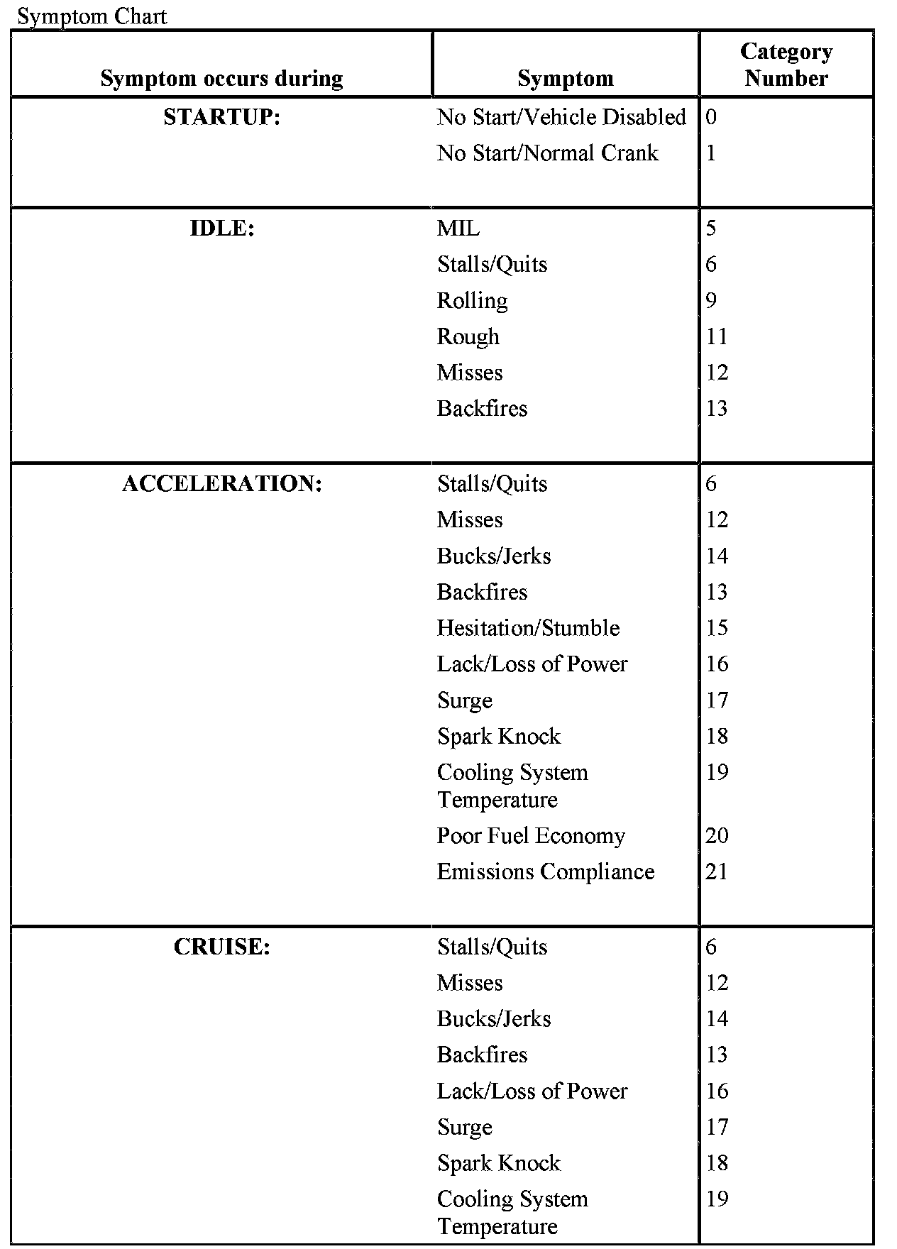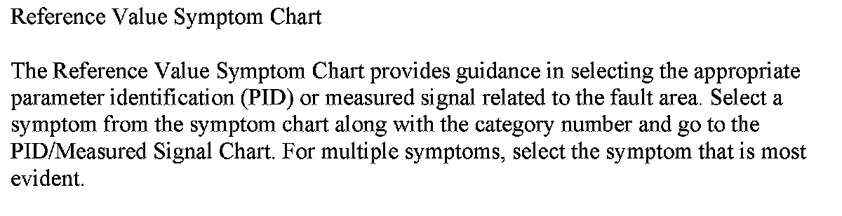 REFERENCE VALUE SYMPTOM CHART