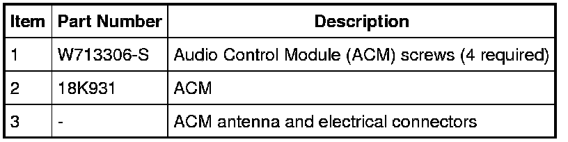 Home >> Ford >> 2011 >> Escape 2WD L4-2.5L >> Repair and Diagnosis >> Accessories and Optional Equipment >> Cellular Phone >> Communications Control Module >> Service and Repair >> Removal and Replacement >> Audio Control Module (ACM)