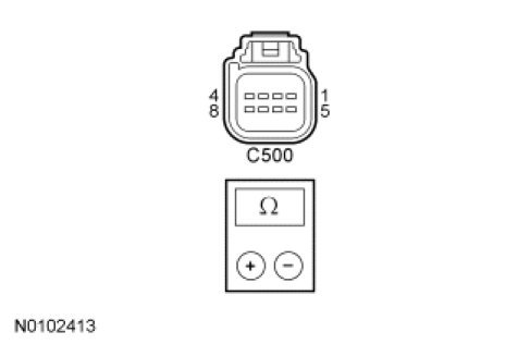 - Measure the resistance between the Keyless Entry Keypad C500, harness side and ground as follows: