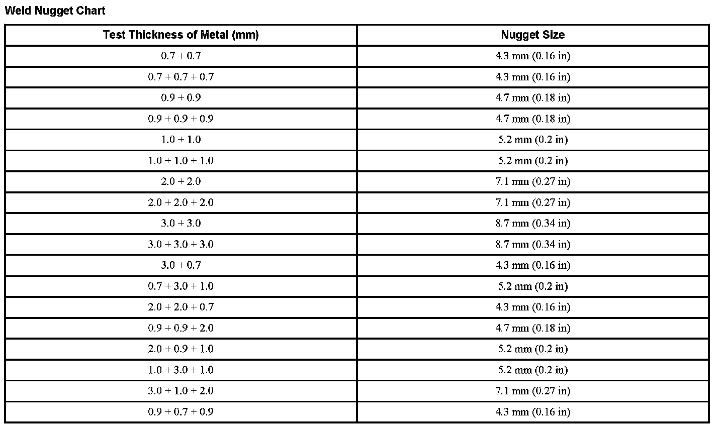 - Factory spot welds may be substituted with either STRW or MIG plug welds. Spot/plug welds should equal factory welds in both location and quantity. Do not place a new spot weld directly over an original weld location. Plug weld hole should equal 8 mm (0.31 in) diameter.