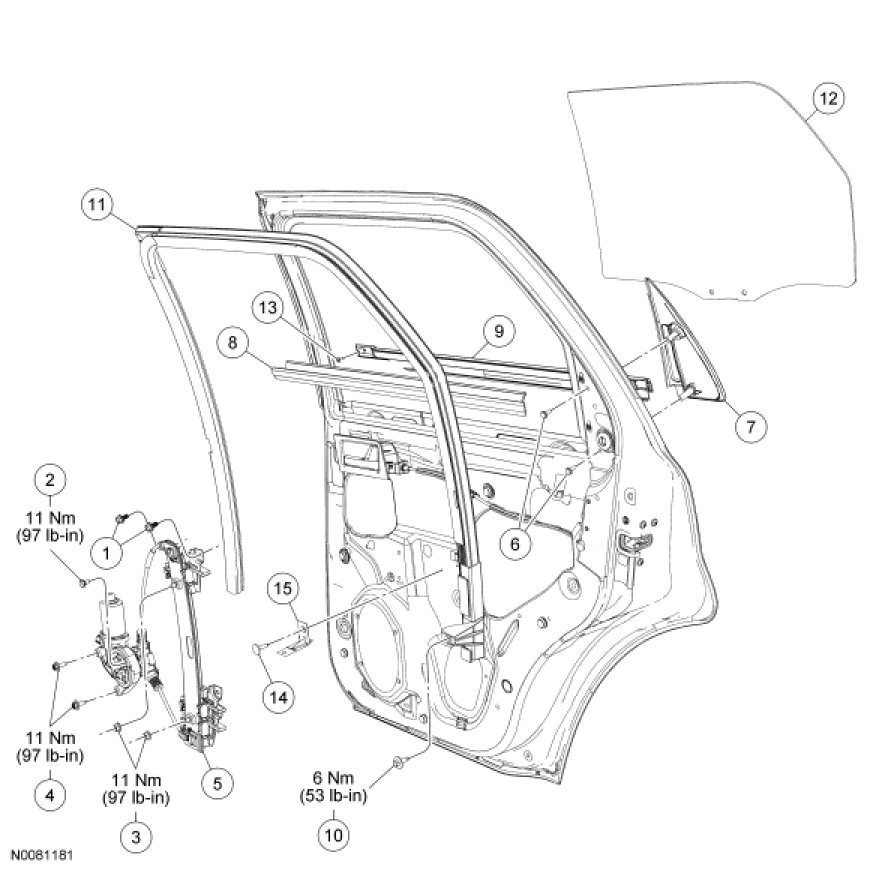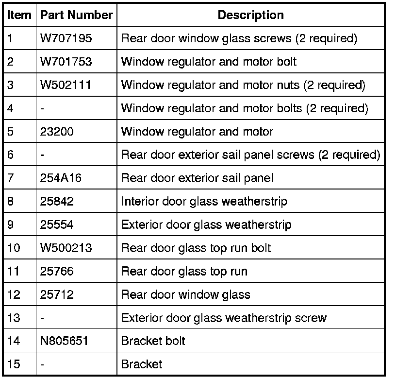 Glass, Frames and Mechanisms - Exploded View, Rear Door