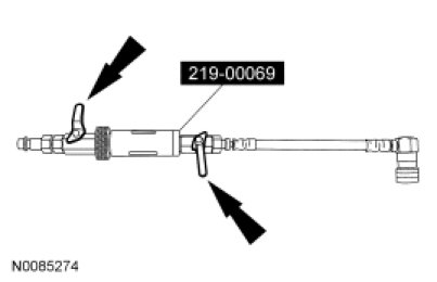 NOTICE: Do not use the R-134a Refrigerant Management Machine built-in oil injection system to inject Motorcraft Electric A/C Compressor Oil to the refrigerant system on hybrid vehicles equipped with an electric Air Conditioning (A/C) compressor if it has been previously used to inject PAG oil. For hybrid vehicles, use only clean manual injection tools. Injection of Motorcraft Electric A/C Compressor Oil into a hybrid vehicle with equipment previously used with PAG oil will contaminate and damage the hybrid A/C system.
