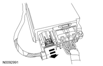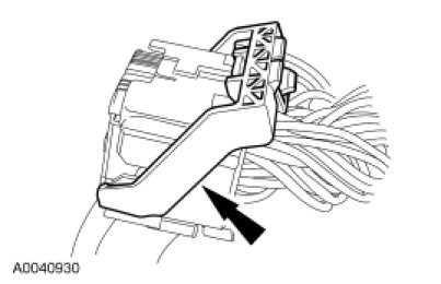 - NOTICE: Do not push the connector to the point where the lever pivots and seats itself. Light pressure is needed to get the connector into position on the Restraints Control Module (RCM) before using the lever to fully seat the connector. Failure to follow these instructions may result in component damage and/or system failure.