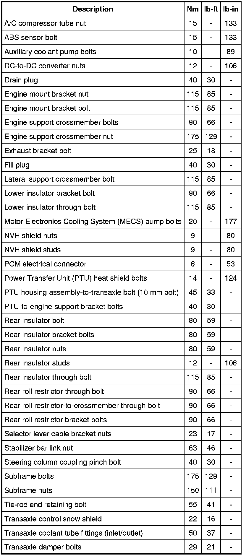 Torque Specifications