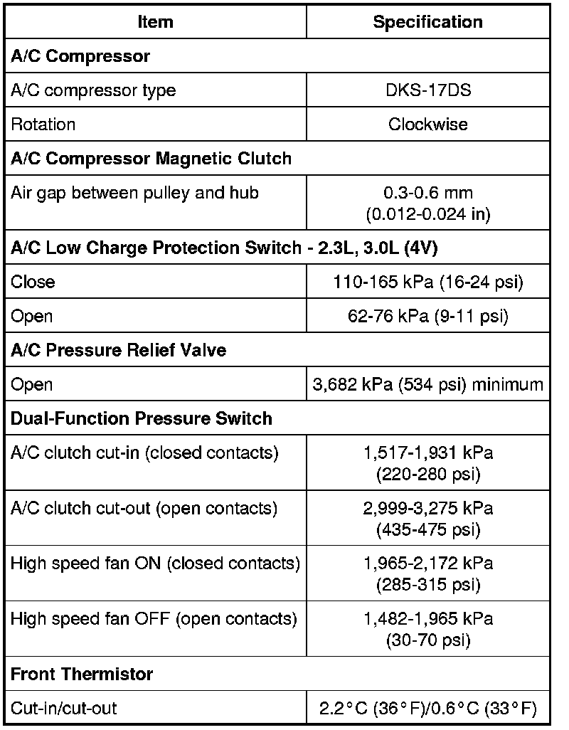 The General Specifications apply to non-hybrid vehicles only. For hybrid General Specifications, refer to Climate Control System - General Information and Diagnostics - Hybrid