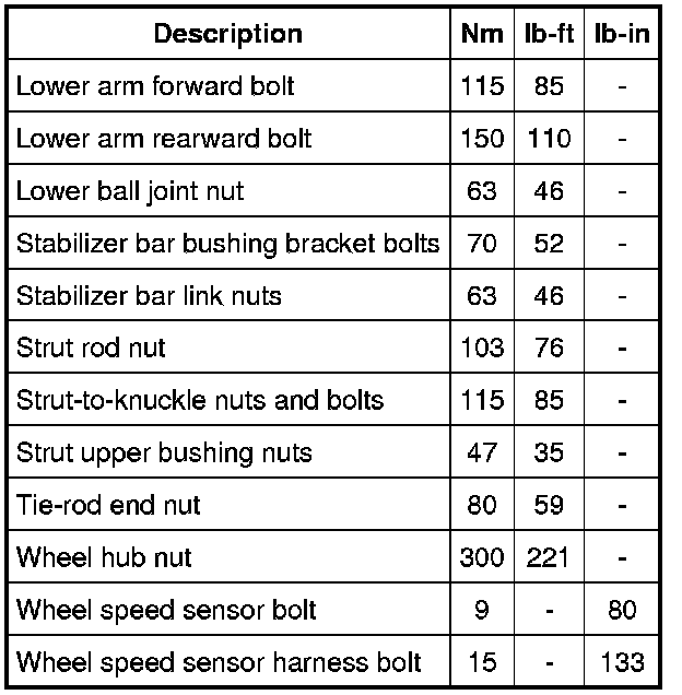 Torque Specifications