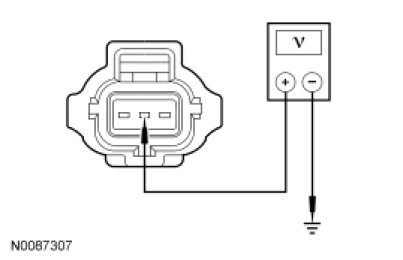 - Measure the voltage between generator C102A-2 (2.5L) or C1104A (3.0L), circuit CDC10 (BU/OG), harness side and ground.