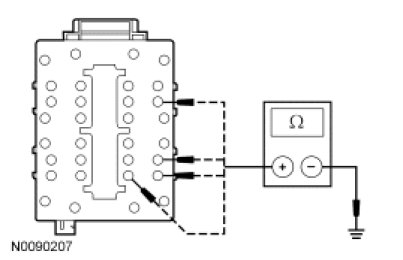 - Measure the resistance between the SJB C2280D-7, 8, 12, and 24, circuit GD182 (BK/GY), harness side and ground.