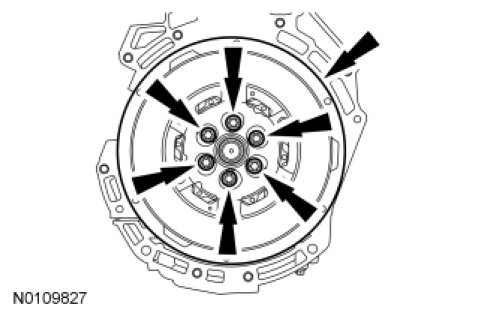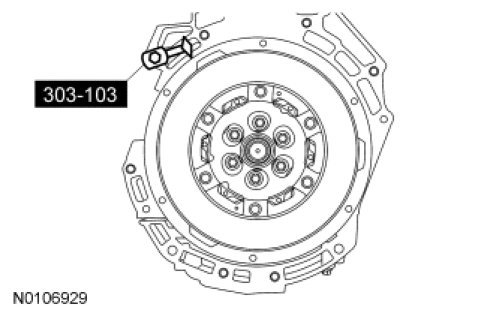 12. NOTE: The dual mass flywheel rotational freeplay inspection cannot be carried out if the friction control plate is off center or damaged.