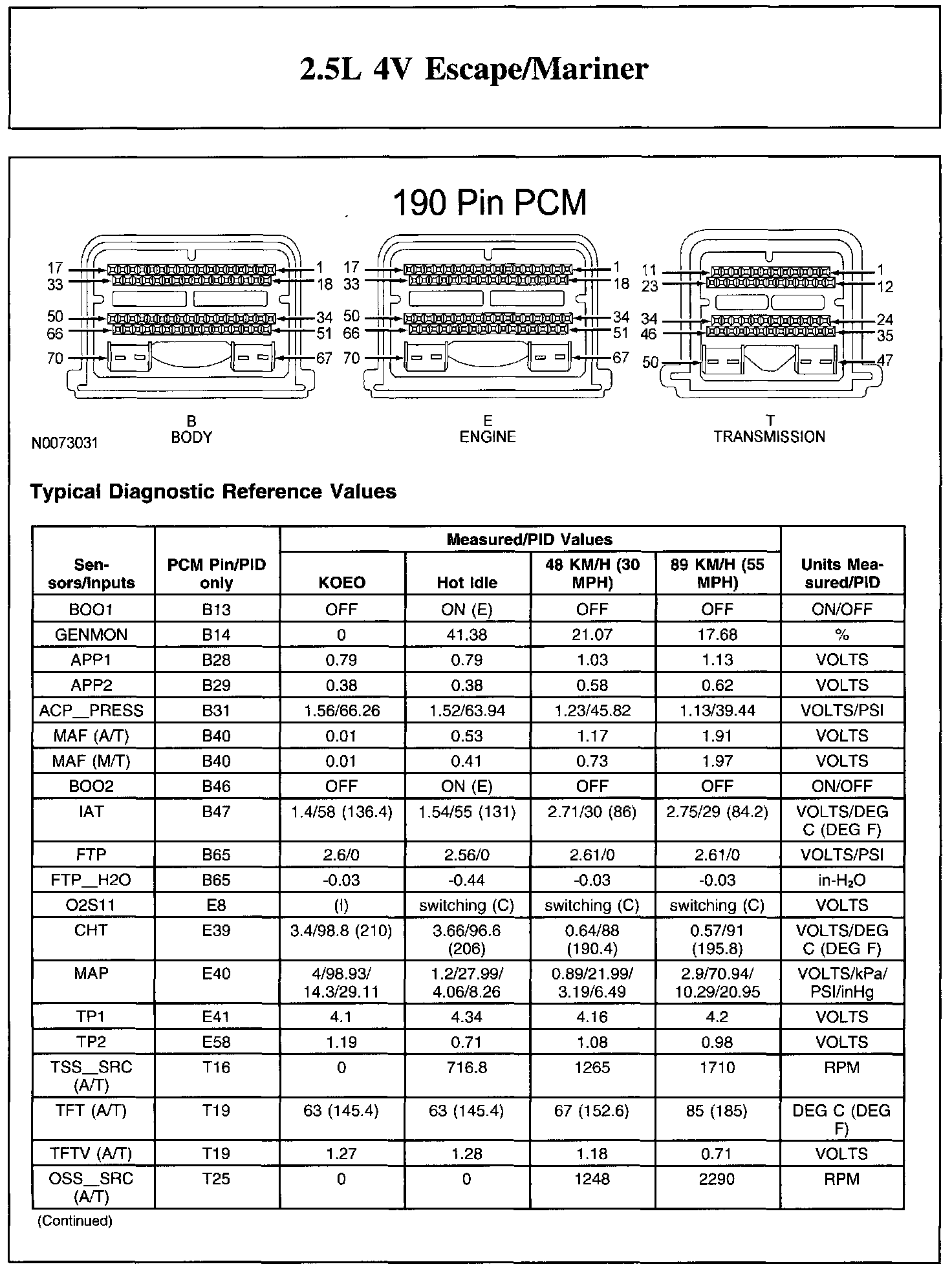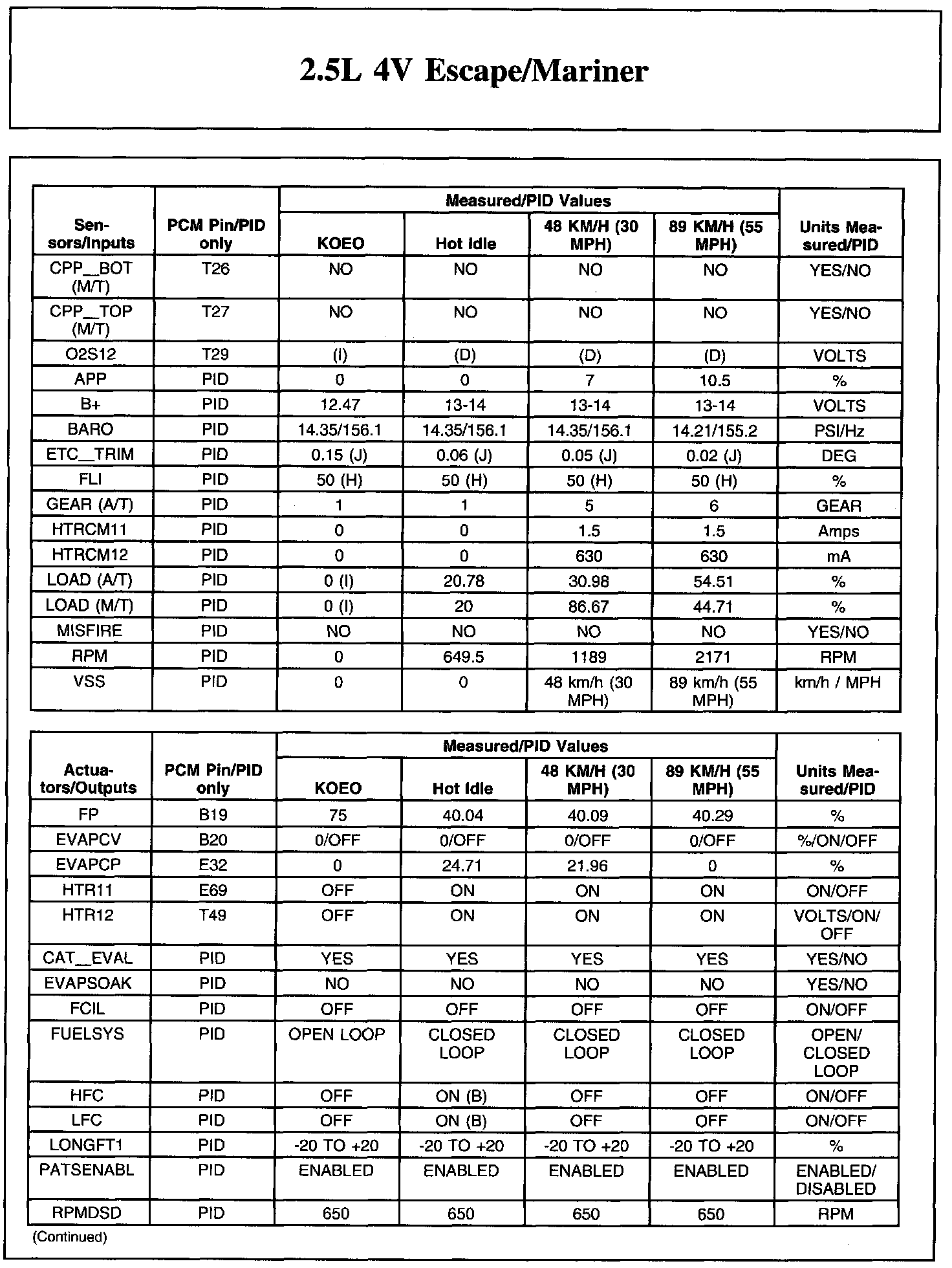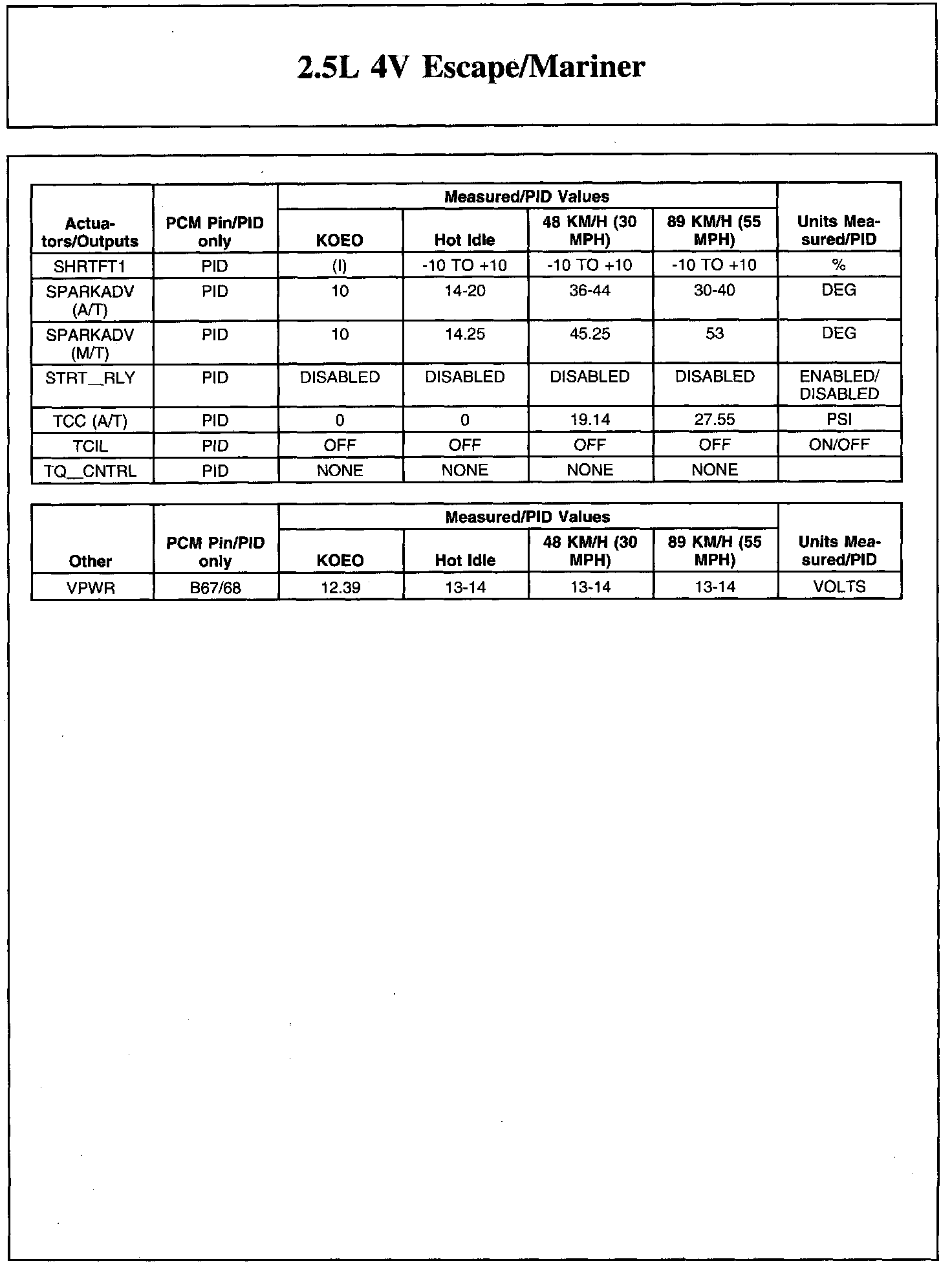 Home >> Ford >> 2011 >> Escape 4WD L4-2.5L >> Repair and Diagnosis >> Powertrain Management >> Computers and Control Systems >> Testing and Inspection >> Scan Tool Testing and Procedures >> Typical Diagnostic Reference Values