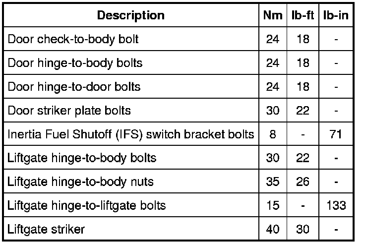 Torque Specifications