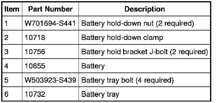 Battery and Battery Tray - Exploded View