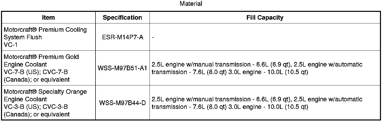 Home >> Ford >> 2011 >> Escape 4WD V6-3.0L >> Repair and Diagnosis >> Specifications >> Mechanical Specifications >> Cooling System >> System Specifications >> Material