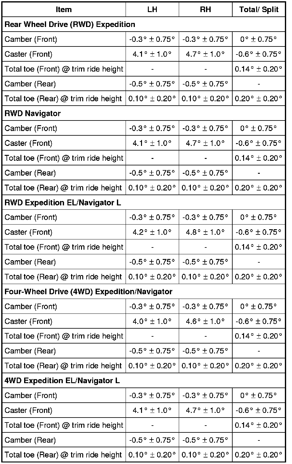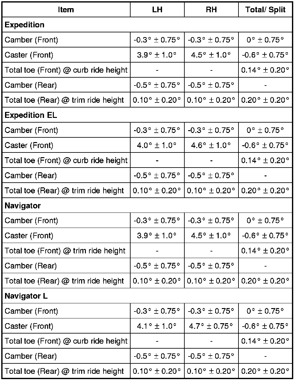 Home >> Ford >> 2011 >> Expedition 2WD V8-5.4L >> Repair and Diagnosis >> Maintenance >> Alignment >> Specifications >> Suspension System - General Information