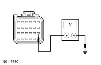 - Measure the voltage between the RCM C310a-13, circuit CBP32 (GN/VT), harness side and ground.
