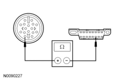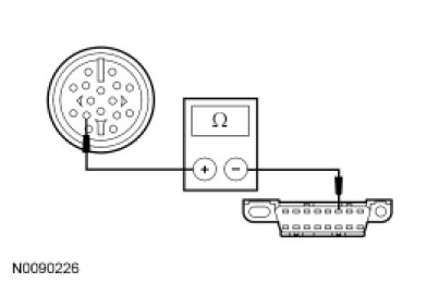 - Measure the resistance between the TCM C1548-6, circuit VDB04 (WH/BU), harness side and the DLC C251-6, circuit VDB04 (WH/BU), harness side.