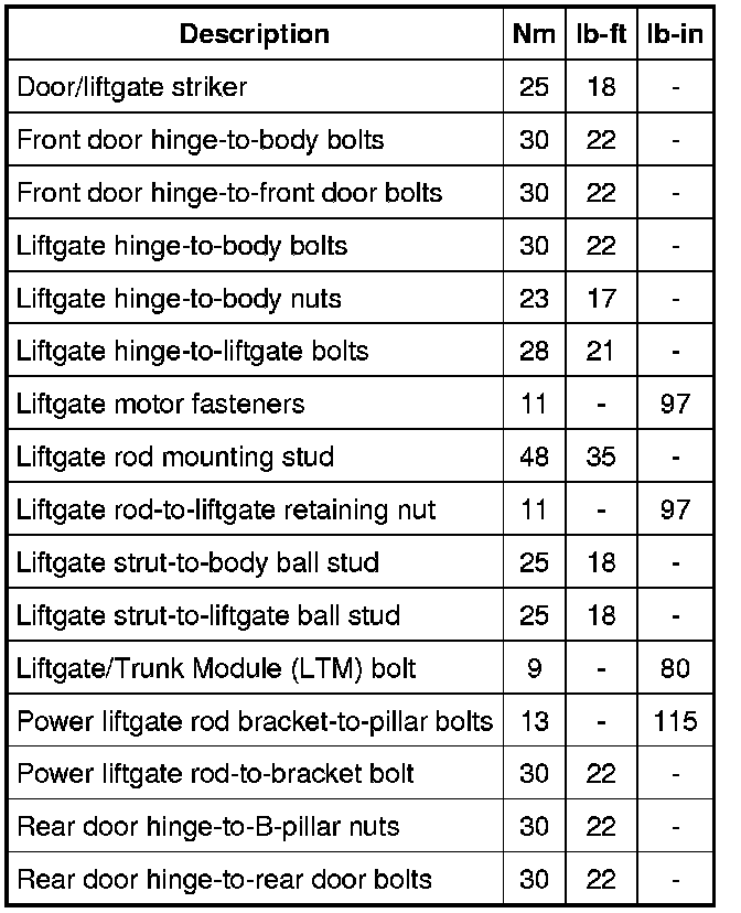 Torque Specifications