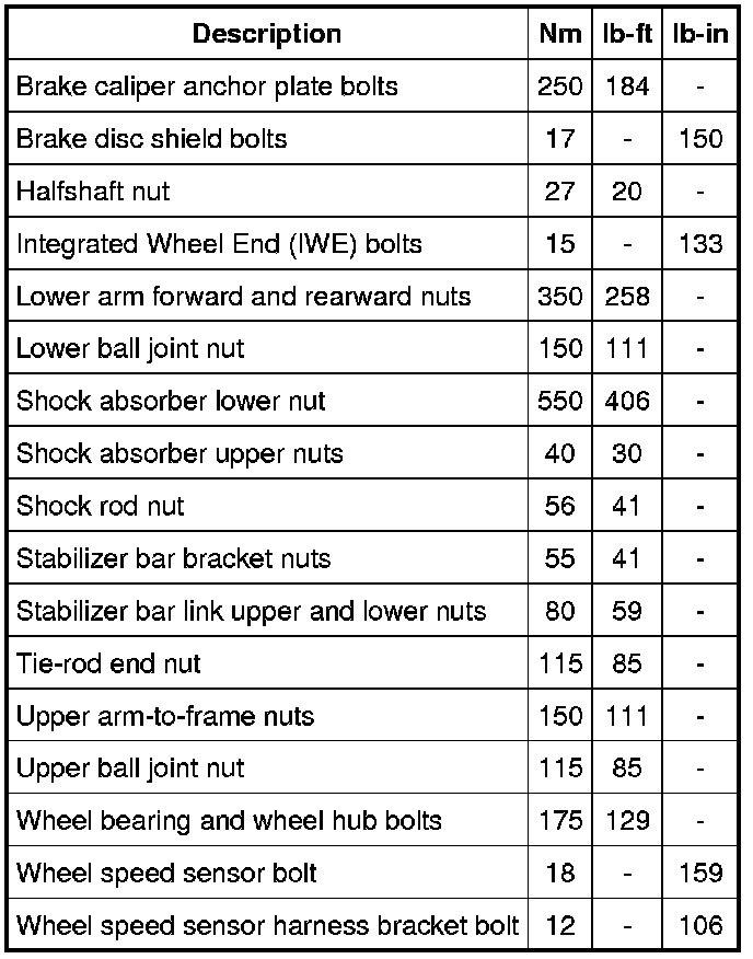 Torque Specifications