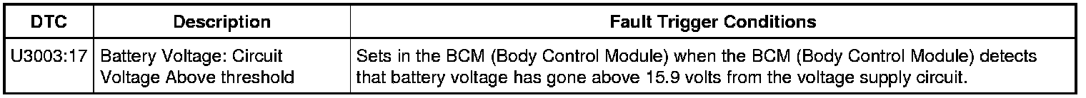 NOTE: DTC (Diagnostic Trouble Code) U3003:17 may be stored in the module memory due to previous battery charging or vehicle jump starting events.