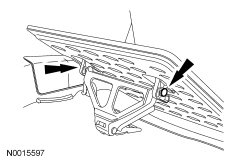 2. NOTICE: Do not lift the load floor flapper panel too far or damage to the wire harness retainers will occur.