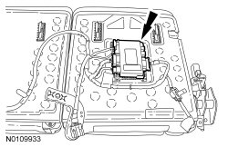 1. Carefully lift the LH (Left Hand) load floor flapper panel, install the PFSM (Power-Fold Seat Module), connect the electrical connectors and attach the retainers.