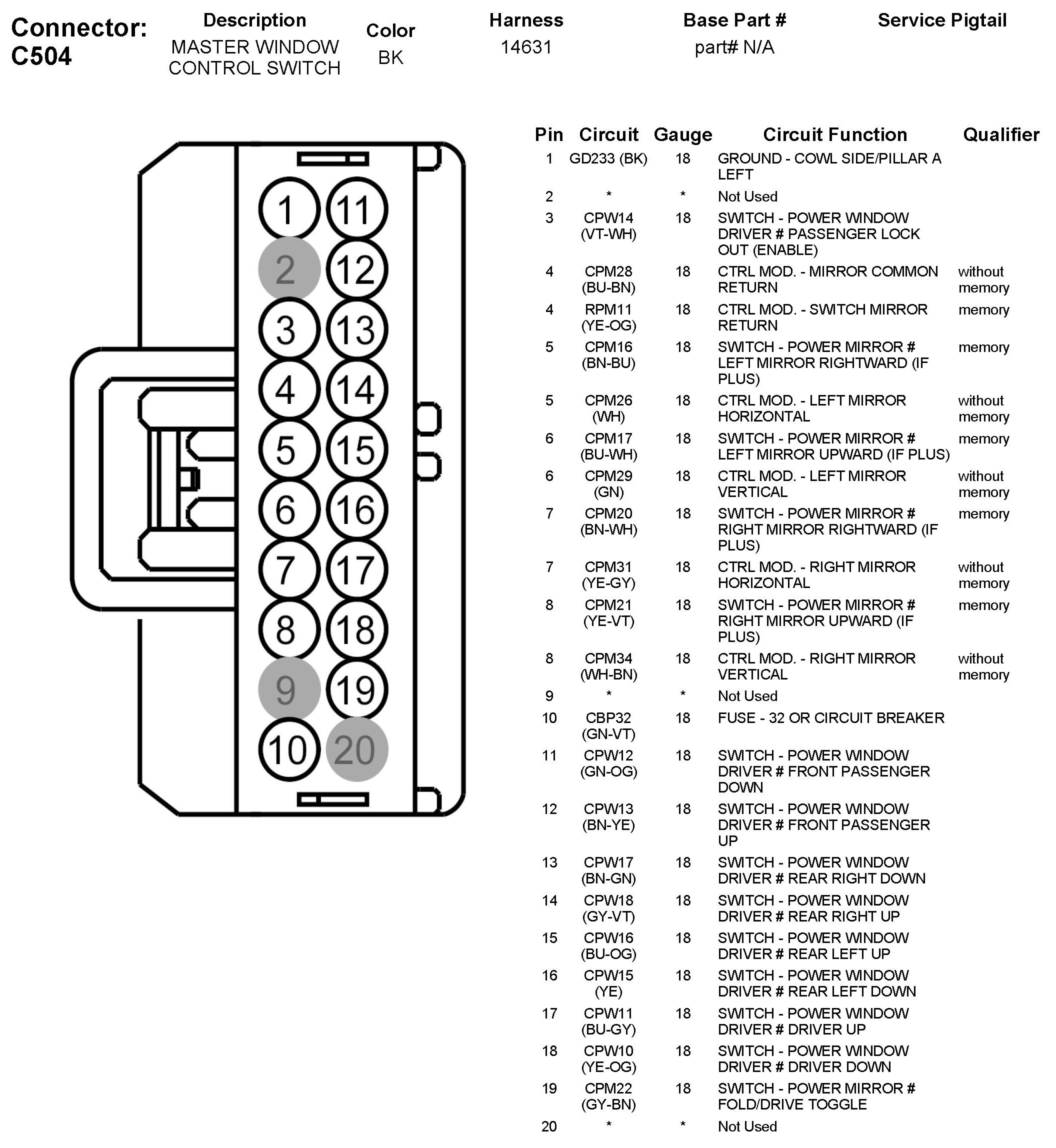 Home >> Ford >> 2011 >> Explorer AWD V6-3.5L >> Repair and Diagnosis >> Diagrams >> Connector Views >> Power Window Switch >> C504 Master Window Control Switch