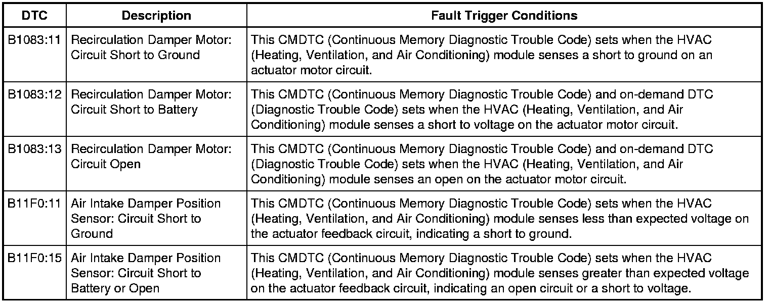 During an actuator calibration cycle, the HVAC (Heating, Ventilation, and Air Conditioning) module drives the air inlet mode door until the door reaches both internal stops in the HVAC (Heating, Ventilation, and Air Conditioning) case. If the air inlet mode door is temporarily obstructed or binding during a calibration cycle, the HVAC (Heating, Ventilation, and Air Conditioning) module may interpret this as the actual end of travel for the door. When this condition occurs and the HVAC (Heating, Ventilation, and Air Conditioning) module commands the actuator to its end of travel, the air intake may not be from the expected source.