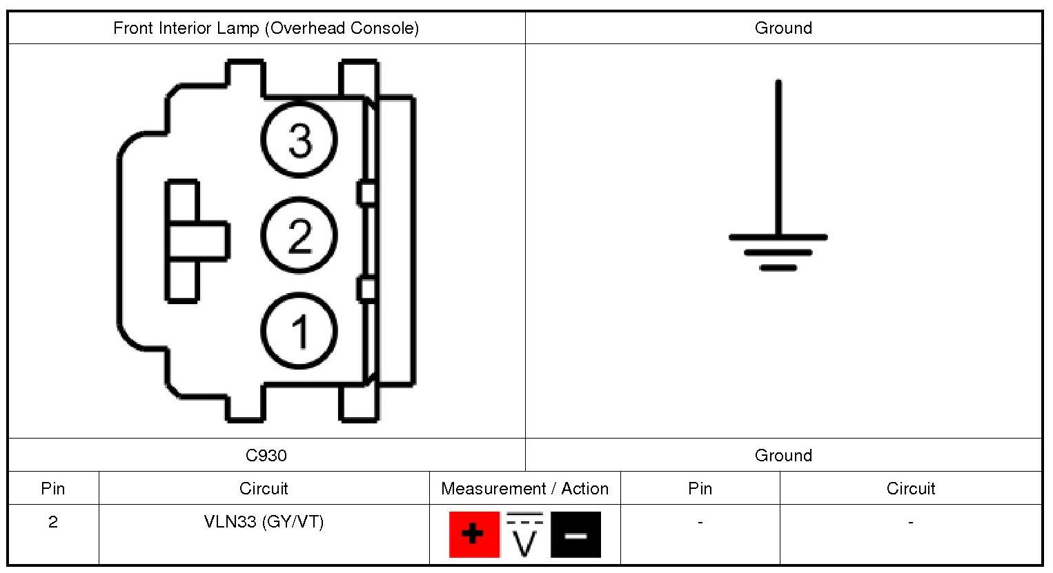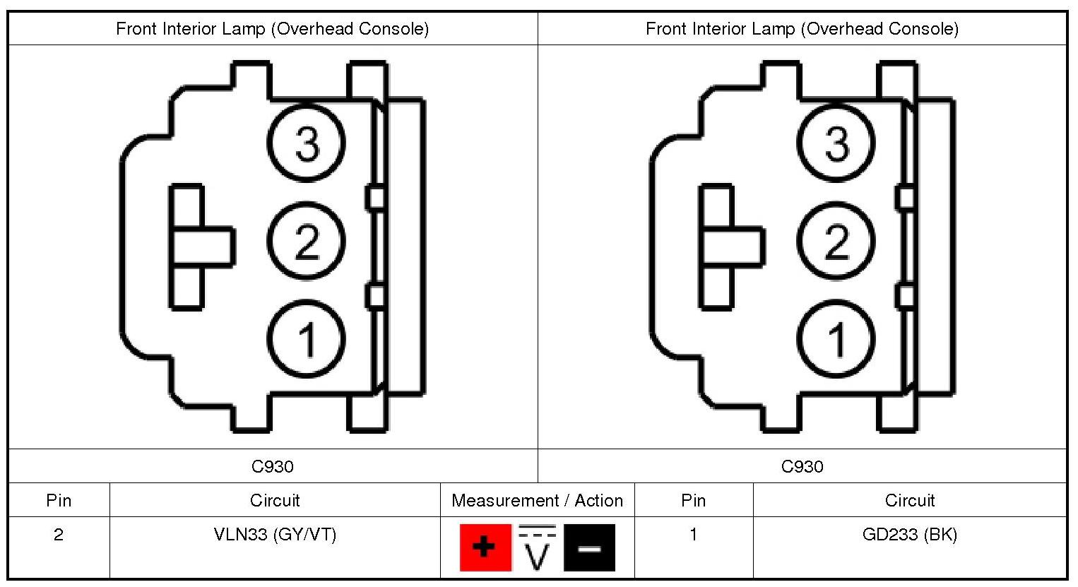 1. For a front interior lamp (overhead console), measure: