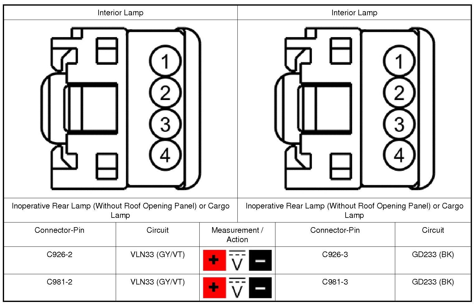2. Disconnect: Inoperative Interior Lamp.