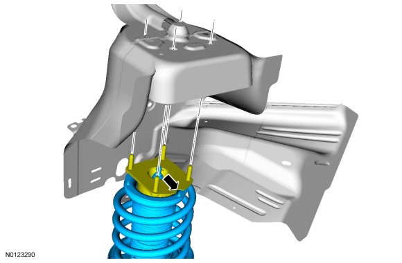 4. NOTE: Do not rotate the strut mount to any other position than 180 degrees from its original position, the notch (located on top of the strut mount) must either point inward (towards the engine) or outward (towards the fender).
