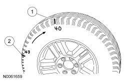 NOTE: Match mounting is a technique used to reduce radial runout or road force on wheel and tire assemblies. Excessive runout is a source of ride quality complaints and match mounting can be used to minimize the runout. Match mounting can be accomplished by changing the position of the tire on the wheel.