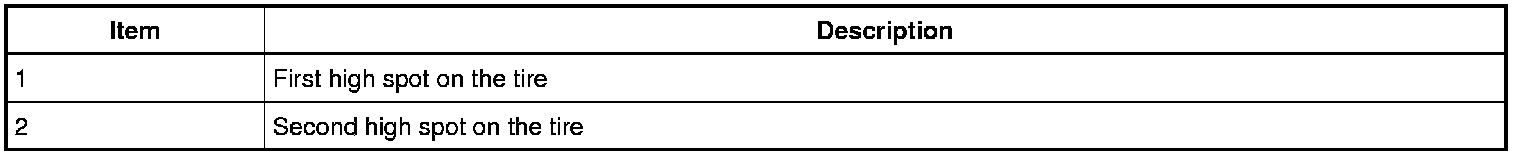 6. NOTE: If the second high spot did not follow the wheel or the tire and the runout is still not within specification, improvements may be made by rotating the tire 90 degrees (one-fourth turn).