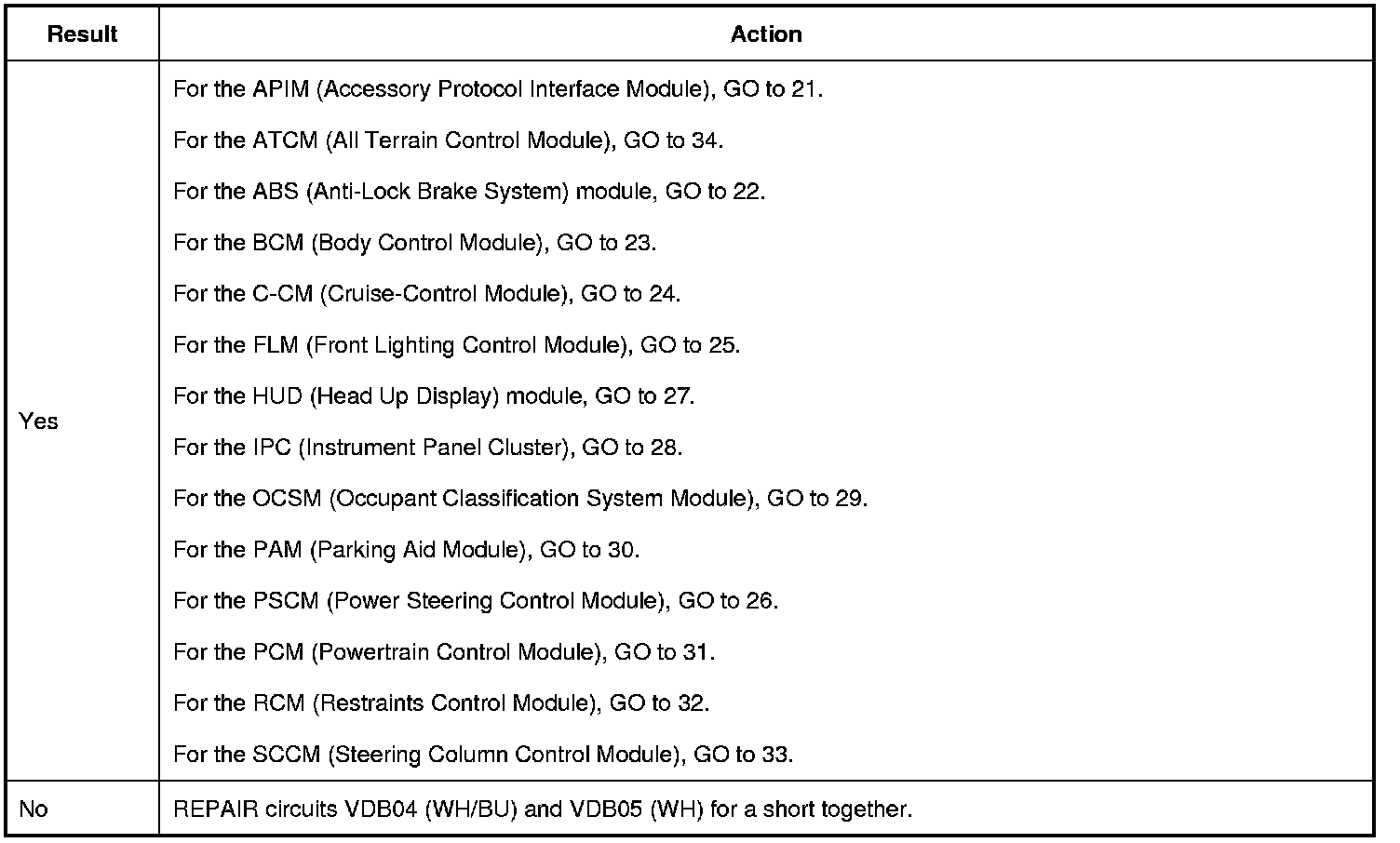 1. Disconnect modules one at a time until other HS-CAN (High Speed Controller Area Network) modules pass the network test. Skip to the end once network operation is restored.