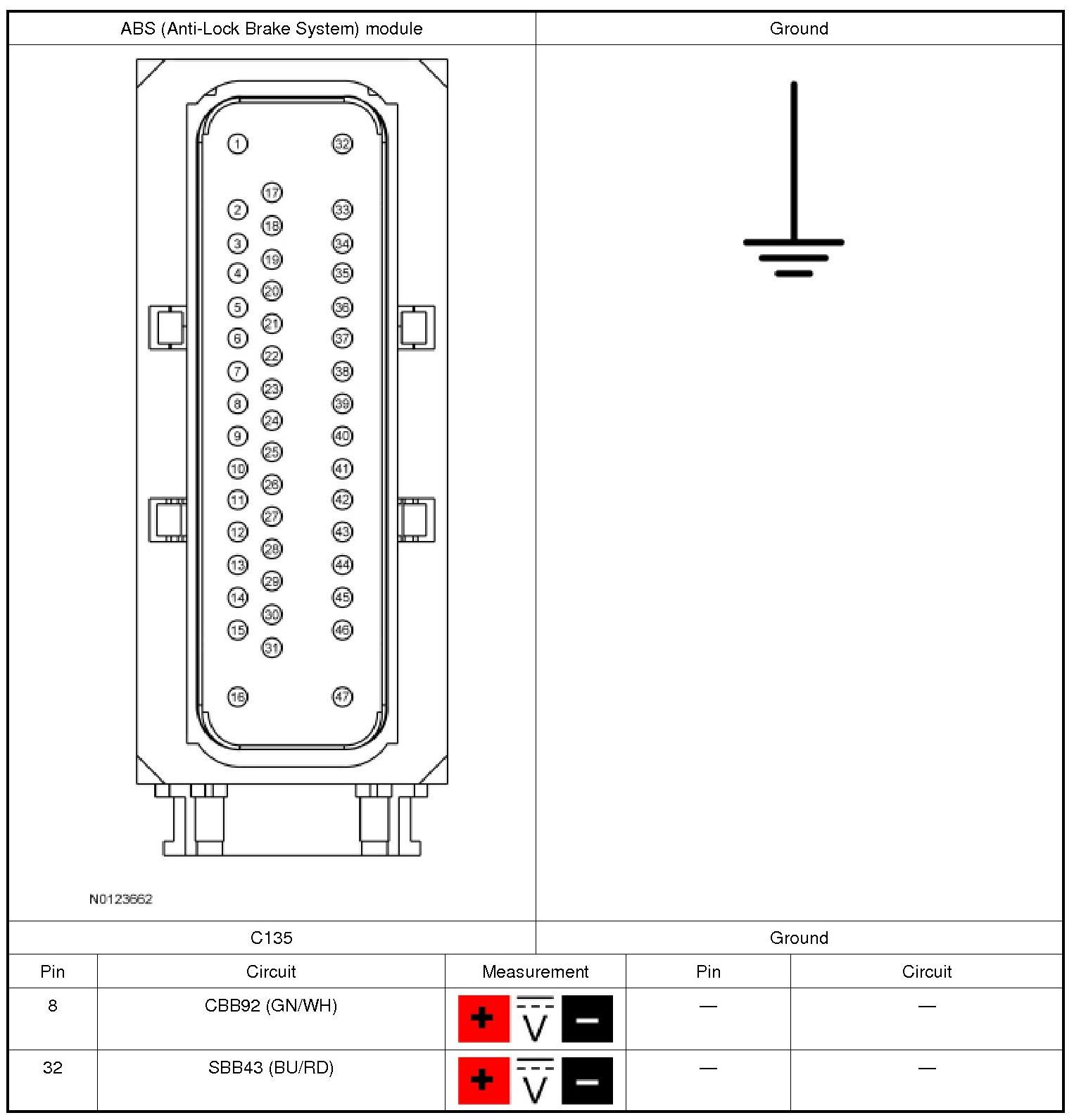 1. CHECK THE ABS (Anti-Lock Brake System) MODULE VOLTAGE SUPPLY CIRCUITS FOR AN OPEN