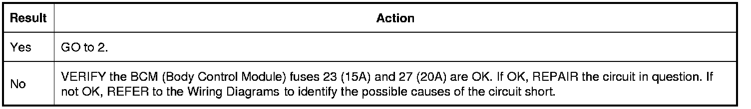 Verify BCM (Body Control Module) fuses 23 (15A) and 27 (20A) are OK.