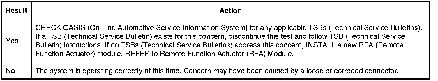4. CHECK FOR CORRECT RFA (Remote Function Actuator) MODULE OPERATION